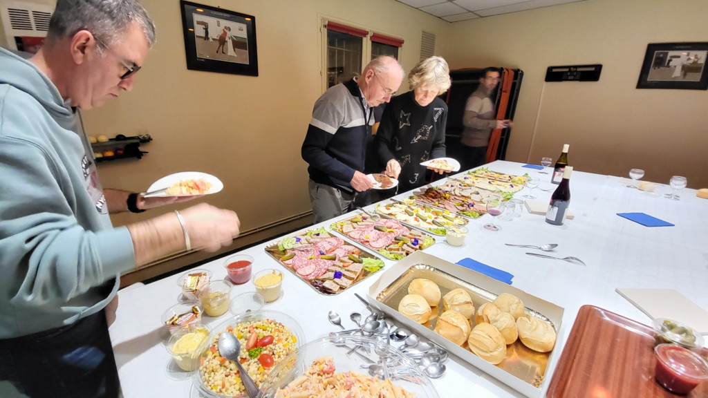 Après cet intermède bien agréable, nous avons dressé le buffet. Ce buffet très apprécié des convives est confectionné par l’ESAT (Etablissement et Service d’Aide par le Travail) de Canteleu. En plus de faire une bonne action, nous avons le plaisir d’avoir des ingrédients de très bonne qualité.