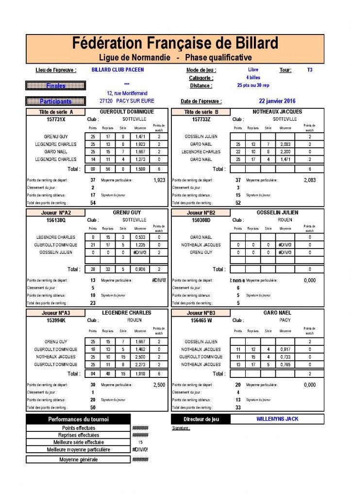 Le 3ème tour de 4 billes s’est déroulé le 22 Janvier 2017 à Pacy-sur-eure.